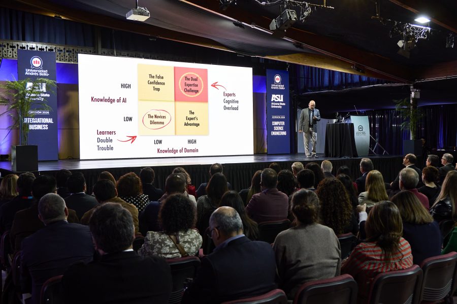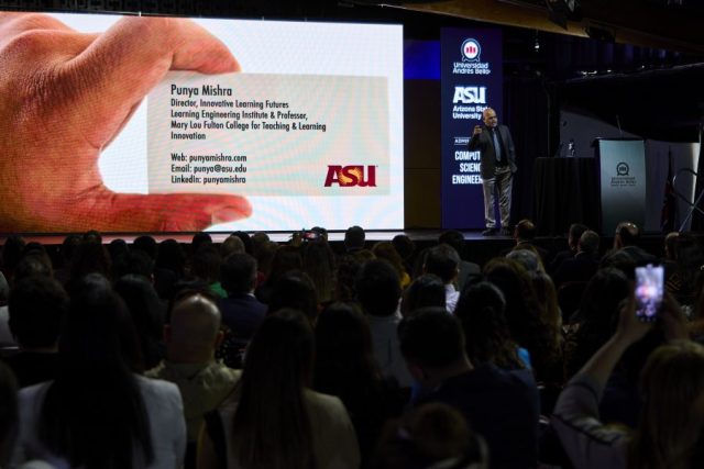 Como corolario a la ceremonia de lanzamiento del UNAB International College se realizó la charla magistral enfocada en “Educación en la era de la inteligencia artificial generativa: aprender del pasado para diseñar el futuro”, a cargo del Dr. Punya Mishra, director de Aprendizaje Innovador del Instituto de Ingeniería del Aprendizaje de Arizona State University (ASU).