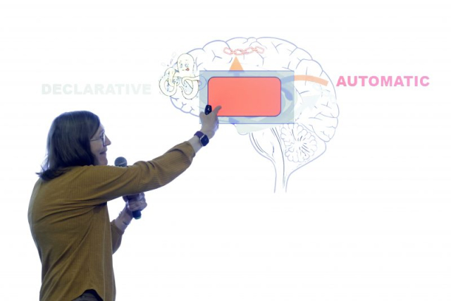 Desde la neurociencia, Oakley explicó que el cerebro utiliza dos sistemas de aprendizaje: uno más consciente, asociado al hipocampo (cuando memorizamos hechos o conceptos), y otro más automático, relacionado con los ganglios basales (cuando desarrollamos hábitos o habilidades). “Ambos deben ir de la mano. Por eso, enseñar solo con clases expositivas o solo con actividades prácticas no basta. Lo ideal es combinar una explicación clara con práctica activa: eso es la enseñanza directa”, aseguró.