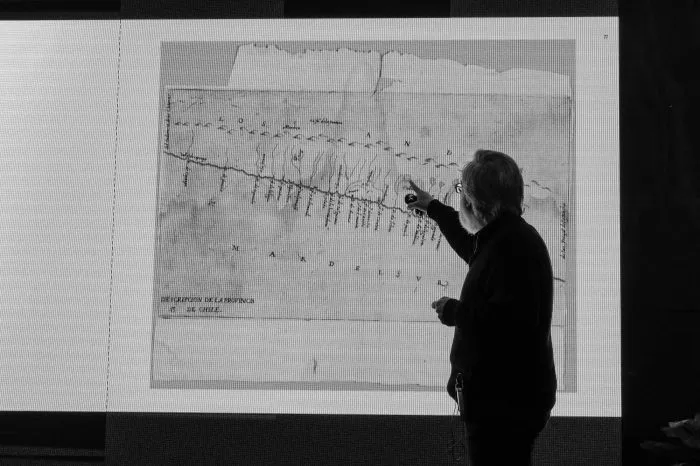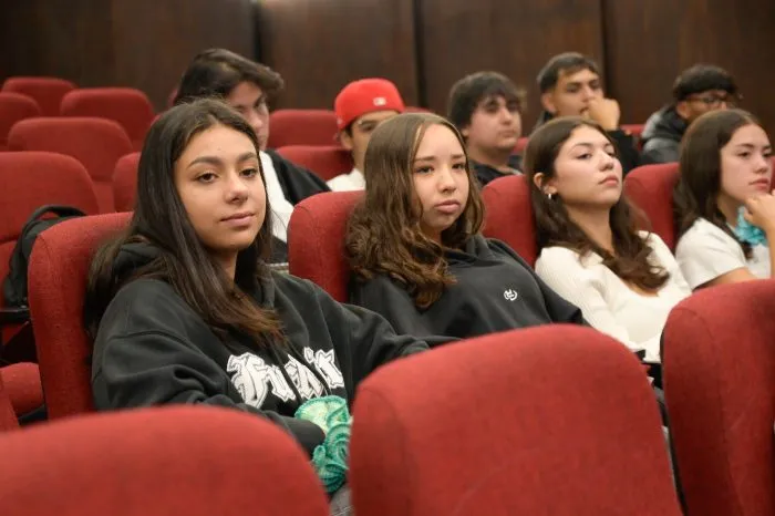 Comentó con los estudiantes “sobre cómo se construyen imágenes sobre lo que no se conoce, cómo se puede hablar de eso y cómo se puede transmitir eso a gente que estaba muy lejos y que había que contarle cosas que solo podían imaginar”.