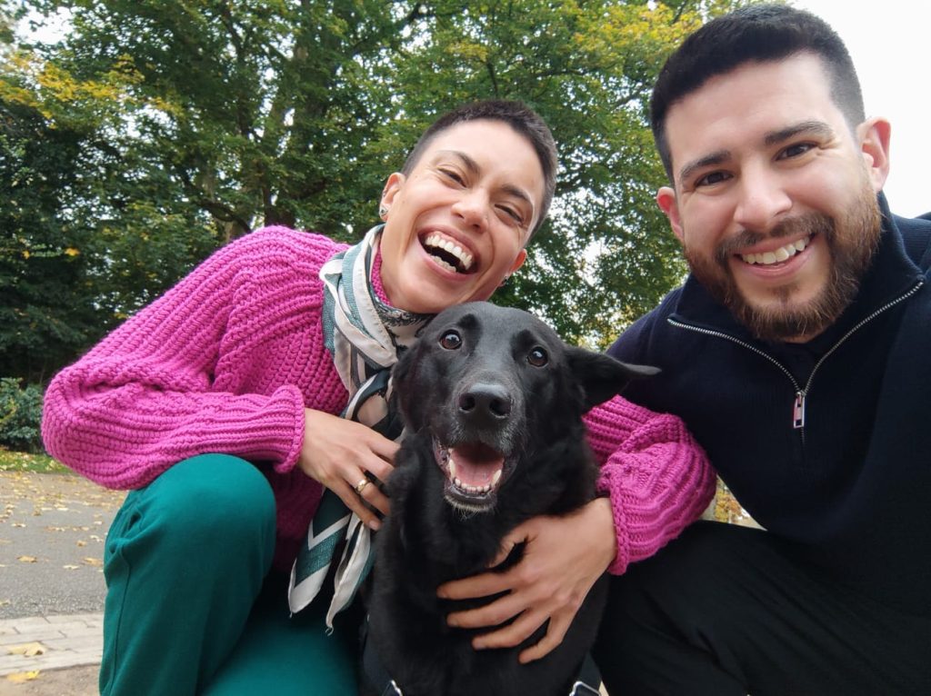 Mis perros son una parte muy importante de mi vida y de mi familia. Vivo con mi marido y con Odín, que ha sido nuestro compañero de viaje durante los últimos años, acompañándonos en los distintos países en los que hemos vivido, y recientemente se sumó Loki, que llegó hace pocas semanas.