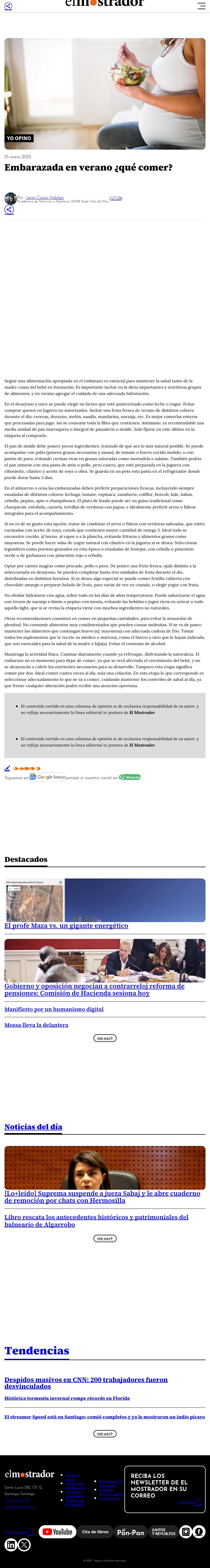 El Mostrador | Columna de opinión: Embarazada en verano ¿Qué comer?