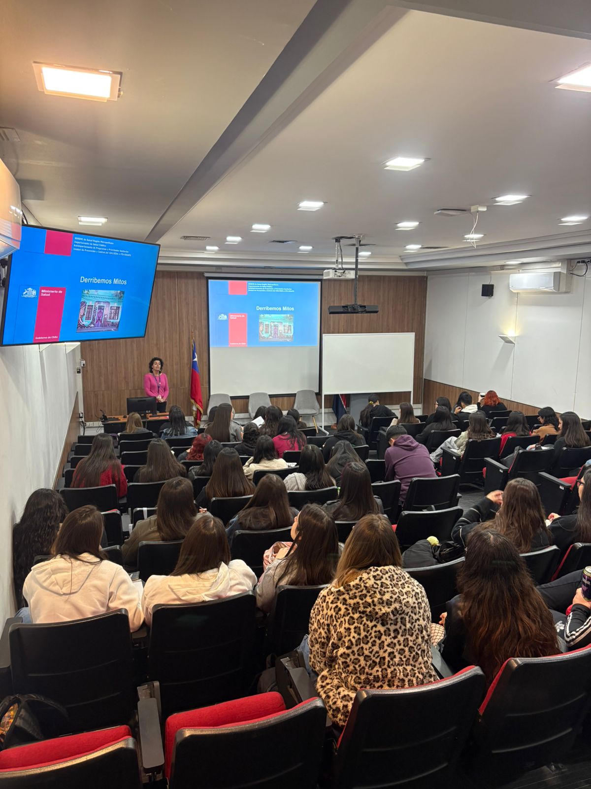 En el auditorio R1 de la sede República, la Escuela de Obstetricia de la Universidad Andrés Bello recibió a la Seremi de Salud Metropolitana para una nueva jornada de capacitación en la toma del test rápido de VIH.