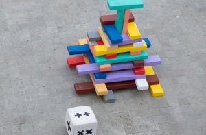 “Trabajamos sobre bigas de plumavit de alta densidad, que lijamos, encajamos y pintamos. Cada una representaba un color y un valor. Fue un proceso técnico exigente pero muy enriquecedor”, cuenta Tomás Gallo.