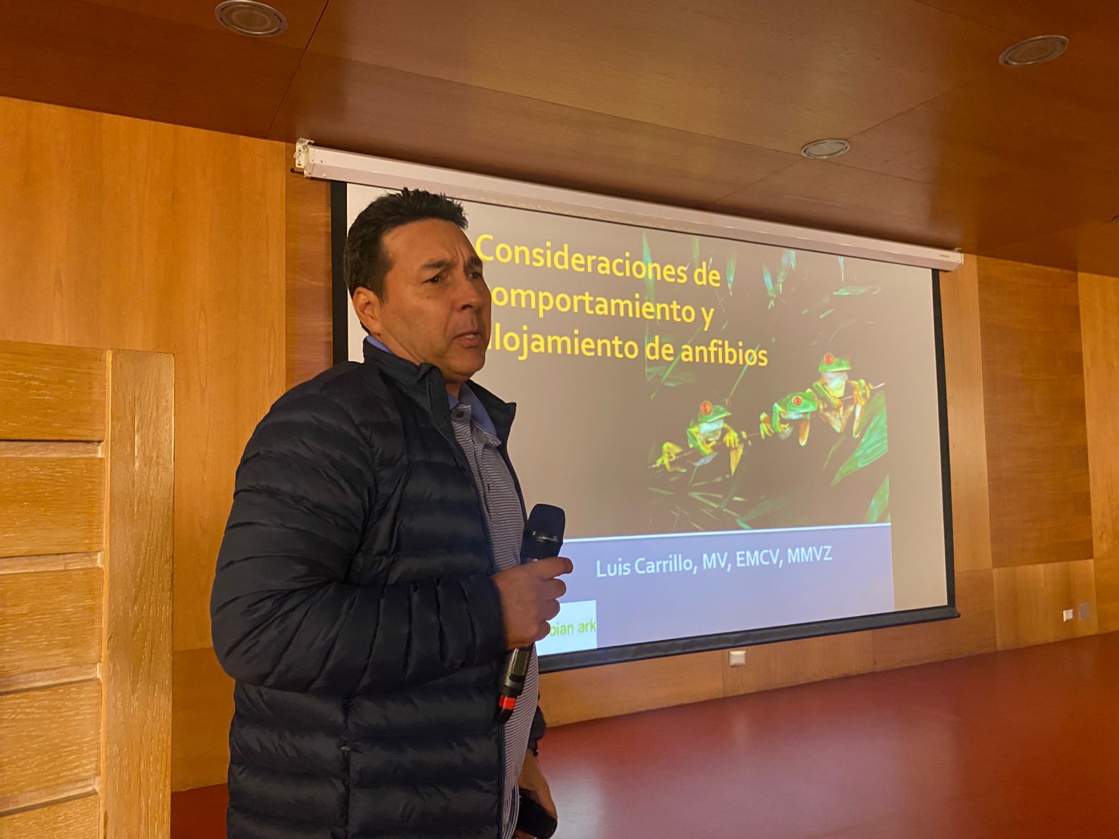 Por su parte, el expositor Luis Carrillo explicó que los anfibios en programas de conservación ex situ “son aquellos que no pueden estar salvaguardados en la naturaleza y que están siendo reproducidos para posteriormente reintegrarlos, al mismo tiempo que se trabaja en mitigar las amenazas que enfrentan”. Entre ellas, mencionó la destrucción del hábitat, la contaminación del agua, las enfermedades y los efectos del cambio climático.