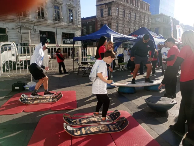 La instancia, además, incorporó un circuito de actividades enfocado en promover la práctica de actividad física y desafiar el equilibrio de los asistentes.