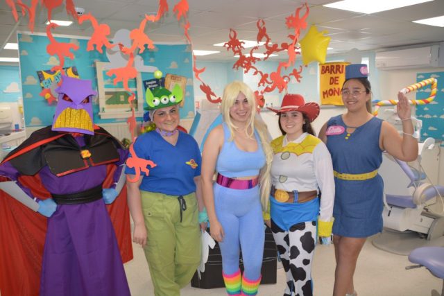 Como cada año, las distintas clínicas se ambientaron con temáticas libres. Docentes y alumnos se disfrazaron y decoraron sus espacios para competir en un concurso interno que ya suma 15 años de historia. En algunos casos, incluso los pacientes se sumaron con entusiasmo a la celebración.