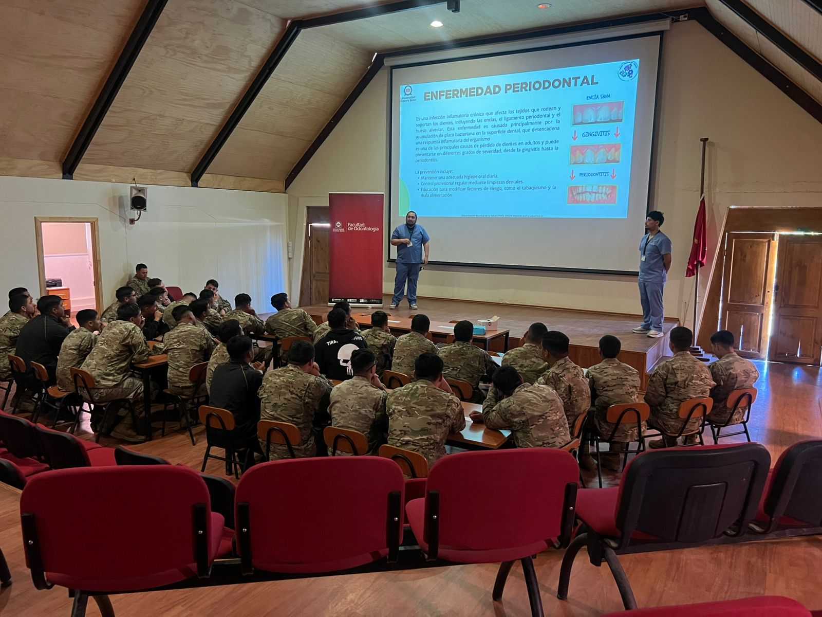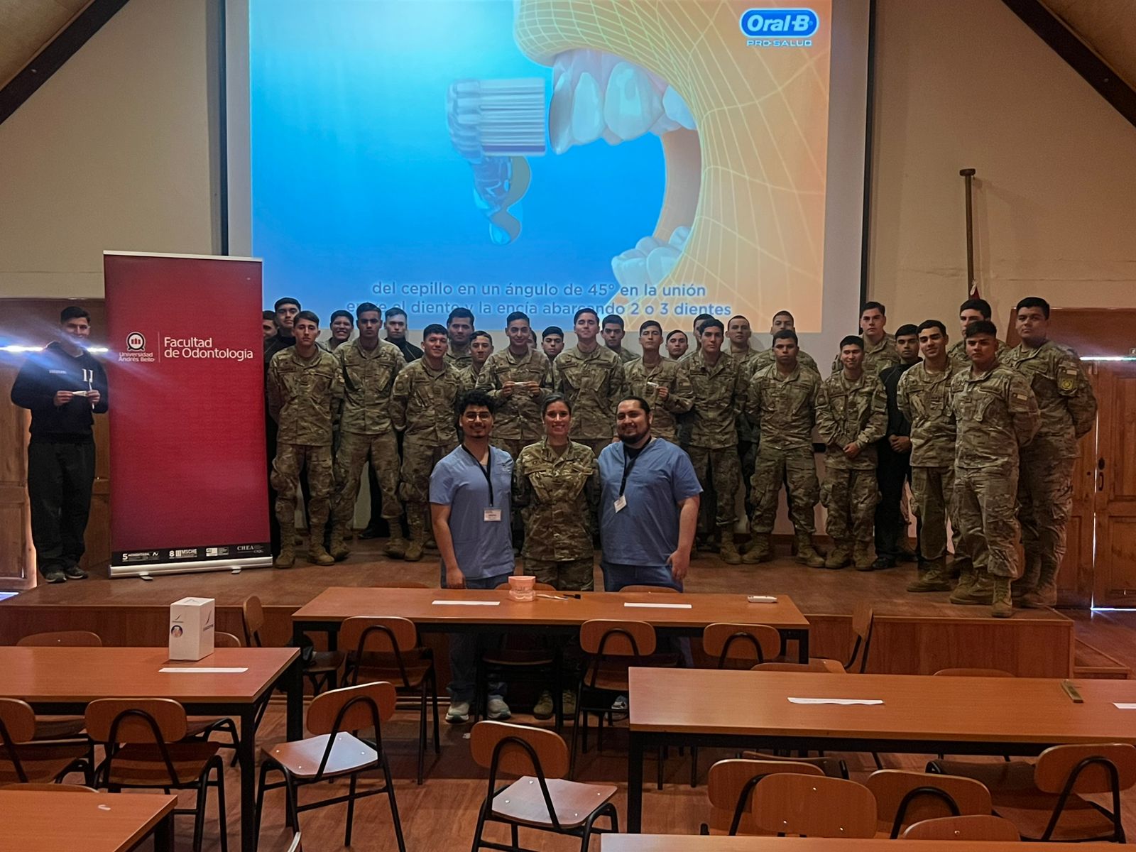 La Facultad de Odontología de la U. Andrés Bello, sede Viña del Mar, llevó a cabo una intervención educativa en el Regimiento N°2 Maipo de Valparaíso, dirigida a los reclutas que se encuentran en su etapa inicial de formación.