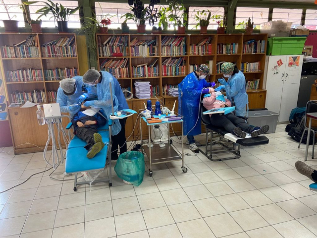 La jornada, que se extendió por cerca de diez horas, contó con el apoyo logístico de Rotary Club Huelén —que gestionó transporte y alimentación—, mientras que la Facultad de Odontología UNAB aportó los insumos e instrumental necesarios para el operativo.