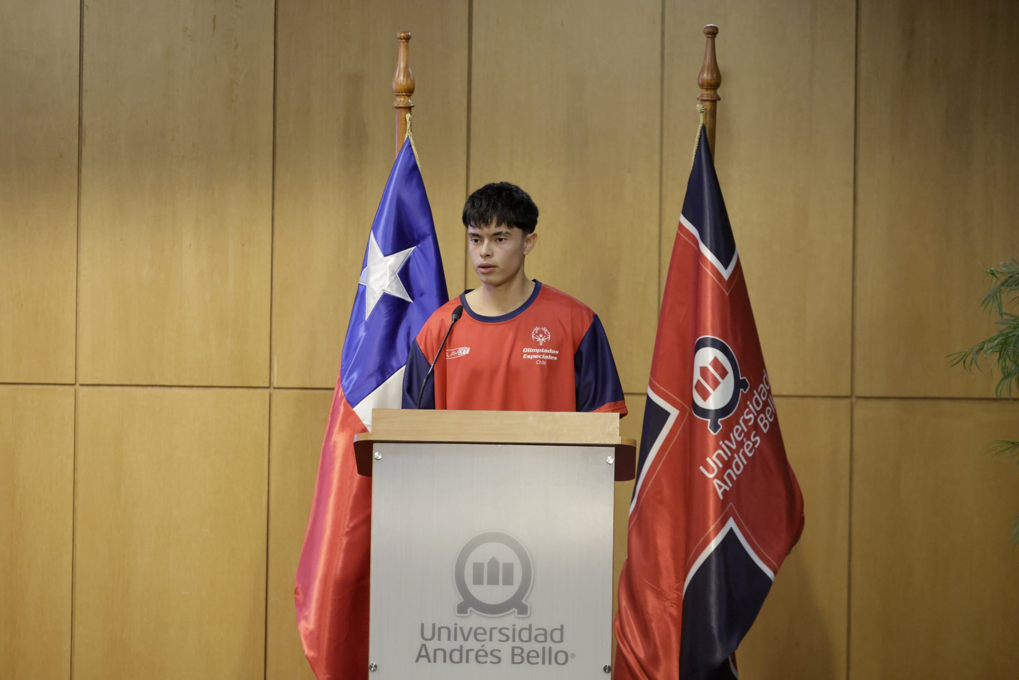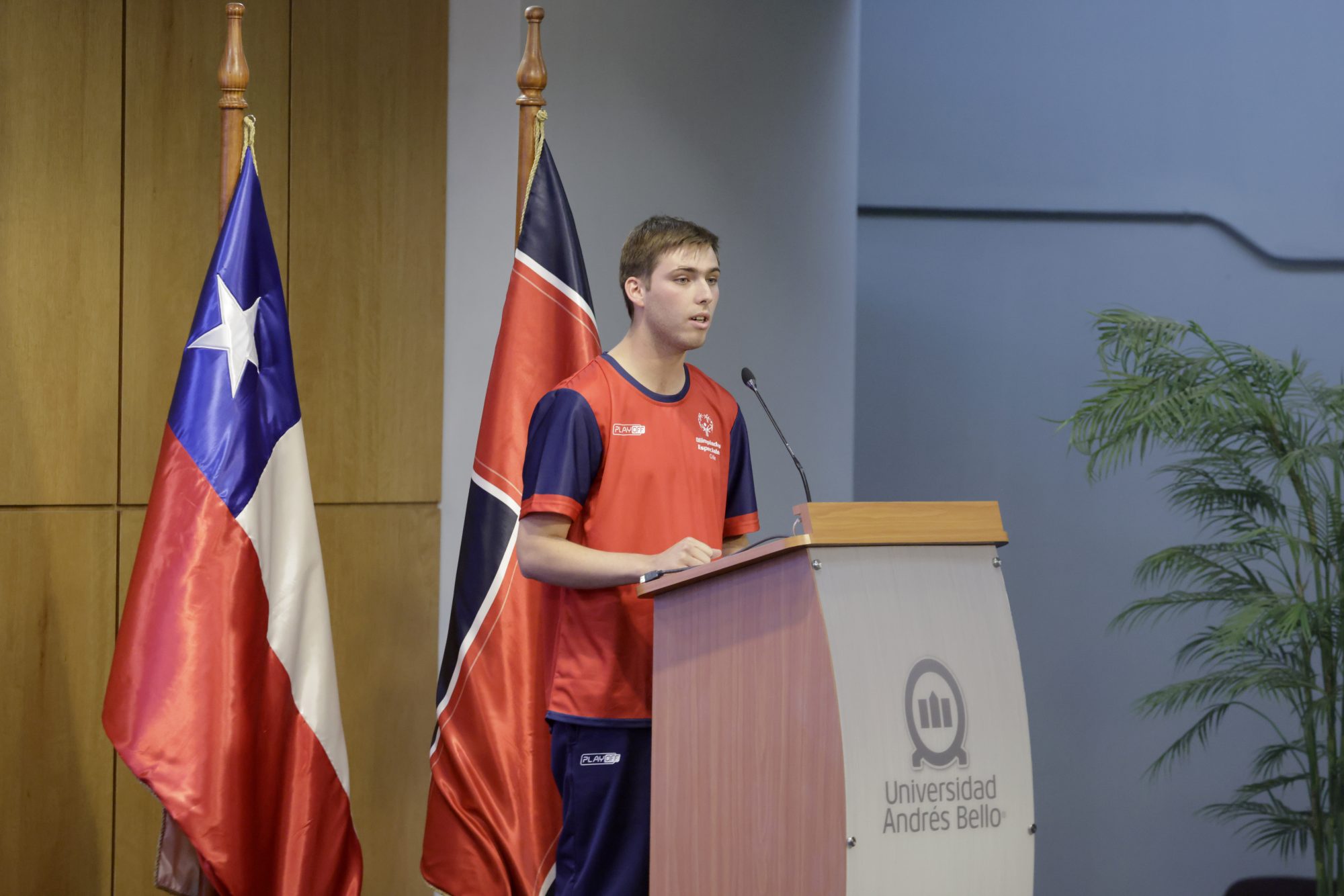 El abanderado Exequiel Prado y estudiante UNAB, entregó uno de los mensajes más emotivos de la jornada.