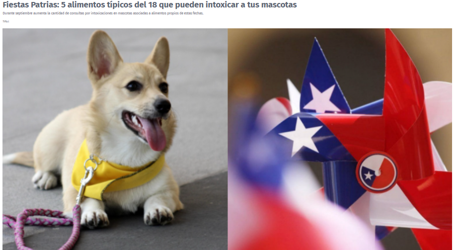 Ante esto, el Dr. Agustín Cartes, académico de la carrera de Medicina Veterinaria advierte que «durante septiembre aumenta la cantidad de consultas por intoxicaciones en mascotas asociadas a alimentos propios de estas fechas».