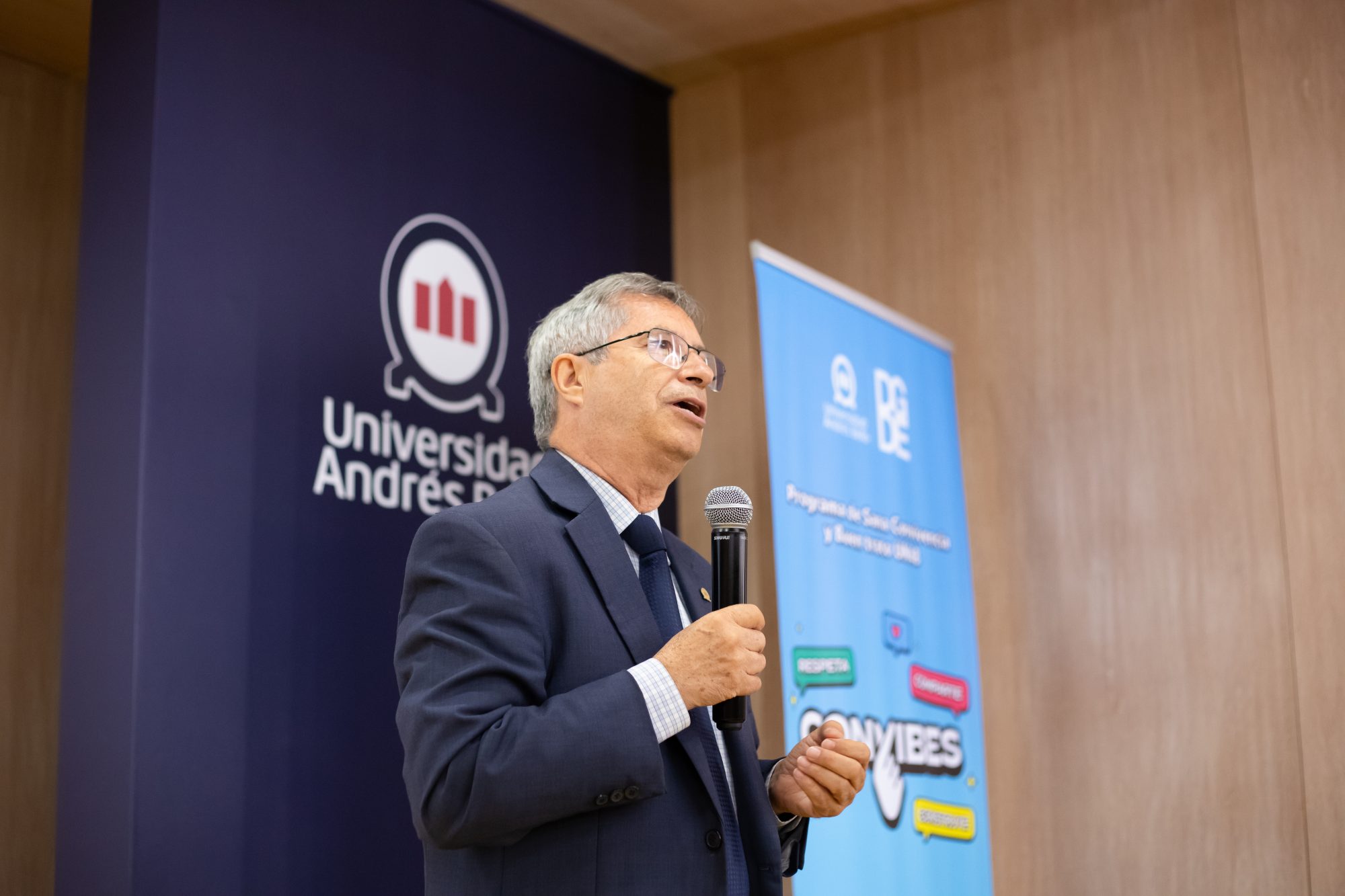 Mauricio Donoso, director de la Escuela de Ingeniería en Administración de Empresas UNAB, dio la bienvenida a los nuevos estudiantes destacando el valor de sus trayectorias profesionales.