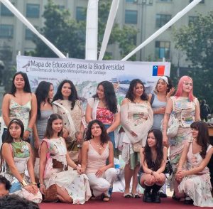 El protagonismo también recayó en los estudiantes de Diseño de Vestuario y Textil, quienes diseñaron prendas bajo la técnica de crazy patchwork, reutilizando materiales como manteles y sábanas antiguas recolectadas en el Persa Biobío.