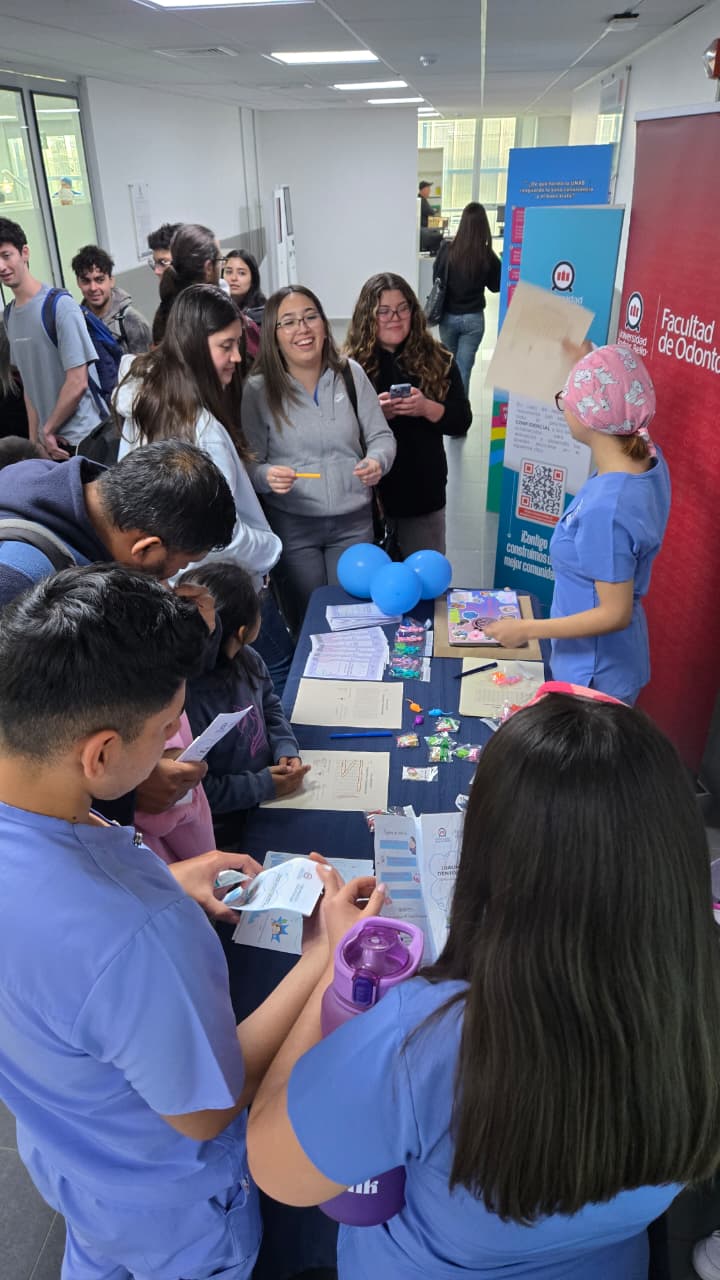 El encuentro se desarrolló el jueves 25 de septiembre en el hall de la Clínica Odontológica UNAB, donde se llevaron a cabo diversas actividades educativas orientadas a la comunidad. La jornada fue liderada por las docentes de la asignatura de Promoción y Educación en Salud —Dra. Laura Veas, Odontopediatría —Dra. Beatriz Beytía y Dra. Alejandra Zamora— y de Endodoncia de pregrado y postgrado, Dra. Carolina Cáceres, reuniendo a cerca de 160 participantes.