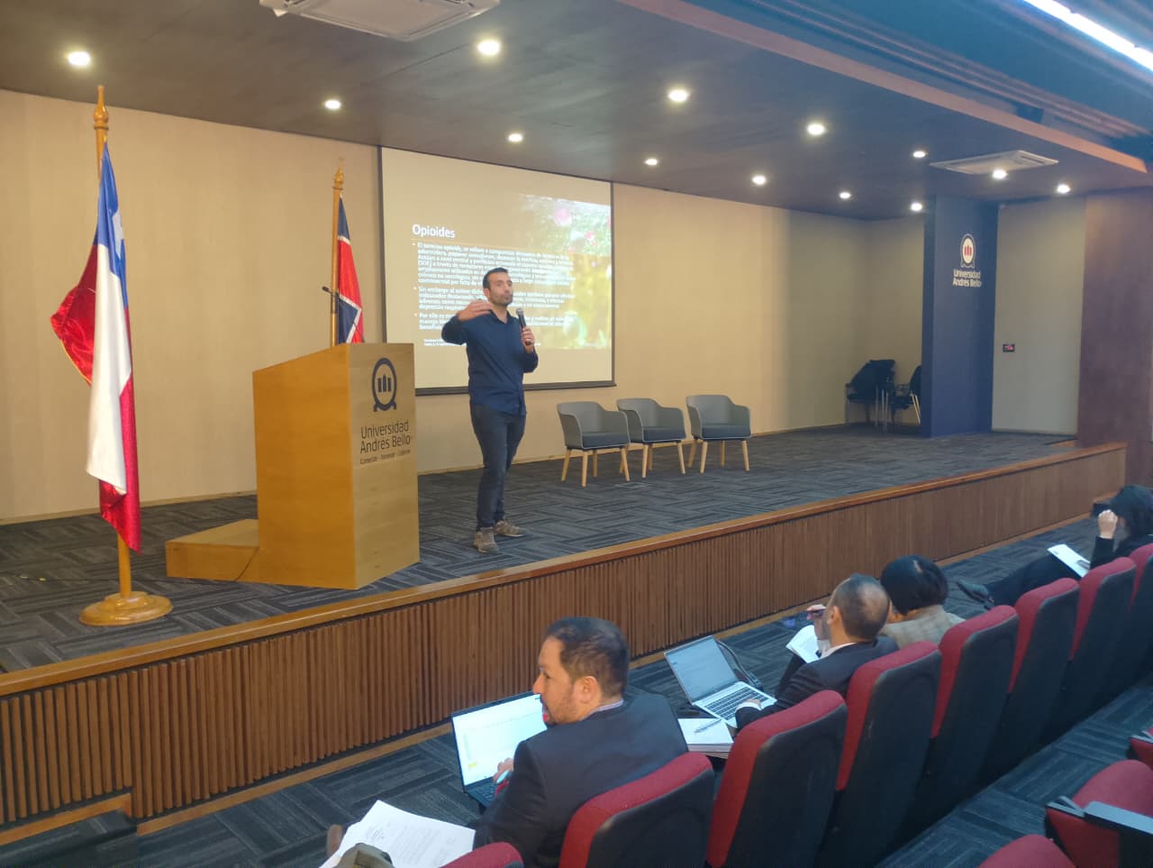 El Campus Bellavista de la Universidad Andrés Bello recibió a más de cien profesionales de atención primaria en la Jornada de Actualización en Manejo Farmacológico del Dolor Crónico No Oncológico (DCNO), organizada por el Servicio de Salud Metropolitano Central (SSMC) y la Escuela de Química y Farmacia UNAB. El encuentro buscó actualizar conocimientos y fortalecer la capacidad resolutiva de médicos, odontólogos y químicos farmacéuticos frente a una condición que afecta cada vez a más personas.