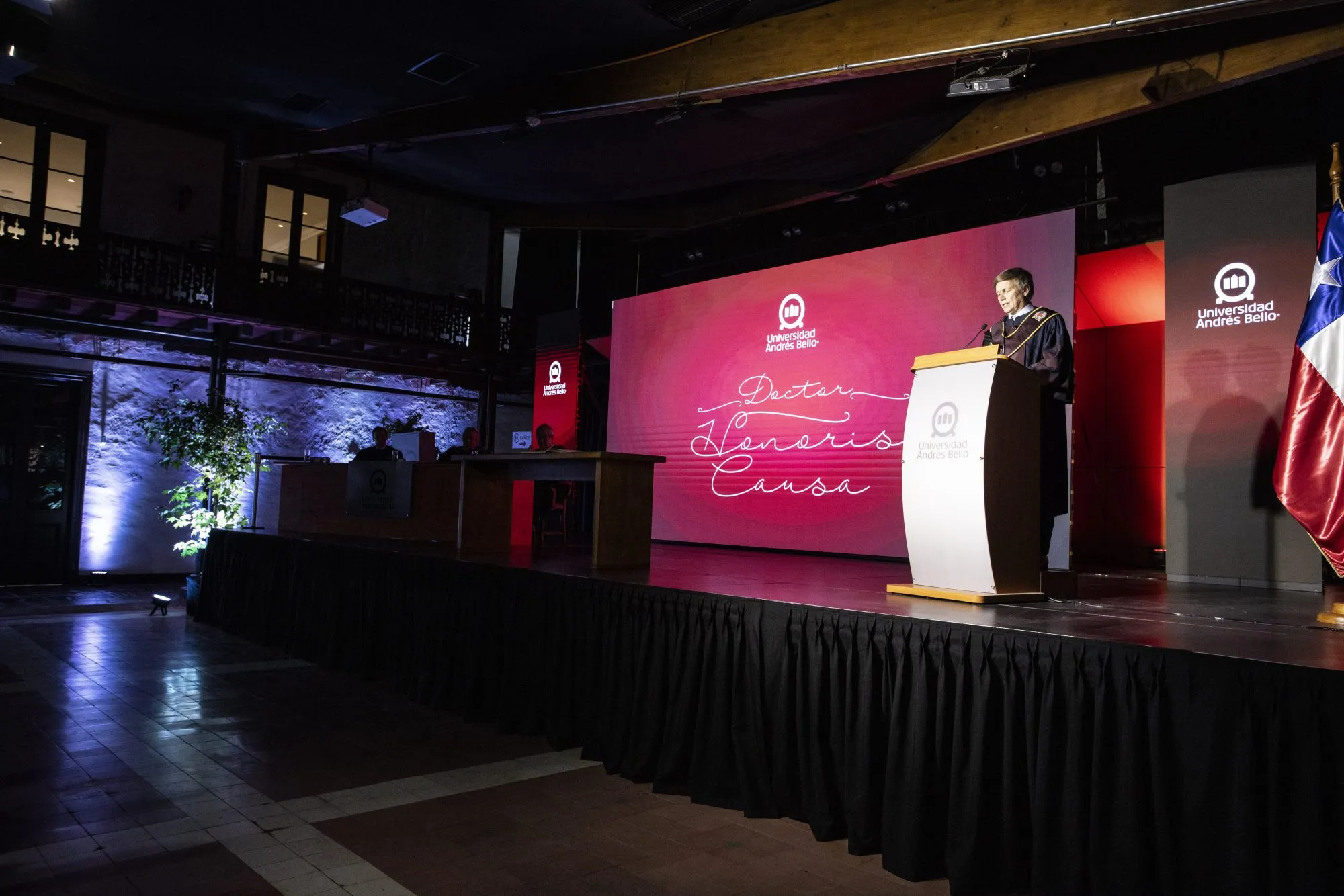 La ceremonia fue presidida por Juan Antonio Guzmán, presidente de la Junta Directiva de UNAB, y Julio Castro, rector de esta casa de estudios, y contó con la presencia de miembros del directorio de Post University, el claustro académico de UNAB, además de autoridades universitarias, docentes, y estudiantes.