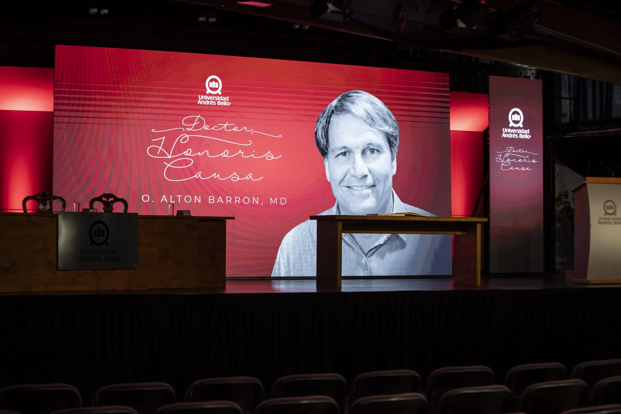 Con una ceremonia en el Salón Colonial de Campus Casona de Las Condes, la Universidad Andrés Bello (UNAB) otorgó el grado de Doctor Honoris Causa al médico estadounidense y presidente de la Junta Directiva de Post University, Dr. Alton Barron.