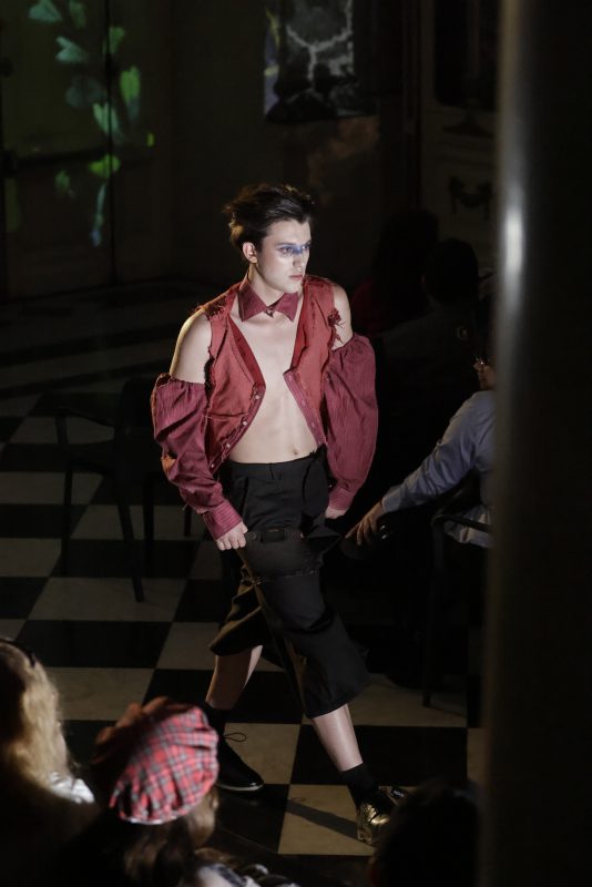 Vi que a mi modelo se le veía súper bien, orgullosa de eso. Y el sobre pantalón que hice también se veía mucho mejor en pasarela que en mi mente… verlo ahora como que igual le agarra más cariño